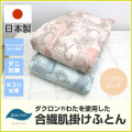 天然素材に似た風合いをもつ、雲のようなふっくらとした質感の極細繊維のダクロン中わた「ソフト・アズ・クラウド」を使用した、洗える合繊肌掛けふとん。