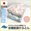 天然素材に似た風合いをもつ、雲のようなふっくらとした質感の極細繊維のダクロン中わた「ソフト・アズ・クラウド」を使用した、洗える合繊肌掛けふとん。
