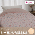 こちらは中綿にレーヨンわたを使用した、なめらかな肌触りの肌掛けふとんです。レーヨンは吸湿性に優れ、シルクのようななめらかさを持っています。