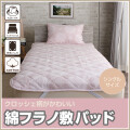 お肌の弱い方や、暑がりさんにオススメの綿素材♪ 通気が良く、ムレにくいので汗冷え対策にもなります。綿のやさしい肌ざわりとあたたかさが心地よい敷パッドです。