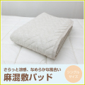 <330-920>さらっと涼感 なめらかな風合い SARA BIZ 麻混敷パット シングル 天然素材 リネン レーヨン 抗菌防臭 部屋干臭防止 クリーンわた使用 ウォッシャブル 四隅ゴム付き 春夏用 敷パット サラビズ 麻混
