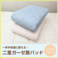 <330-921>ピュアコットン SARA BIZ 綿ウォッシュ二重ガーゼ敷パット シングル 天然素材 綿100% コットン 抗菌防臭 部屋干臭防止 クリーンわた使用 ウォッシャブル 四隅ゴム付き オールシーズンOK 春夏用 敷パット サラビズ 2重ガーゼ