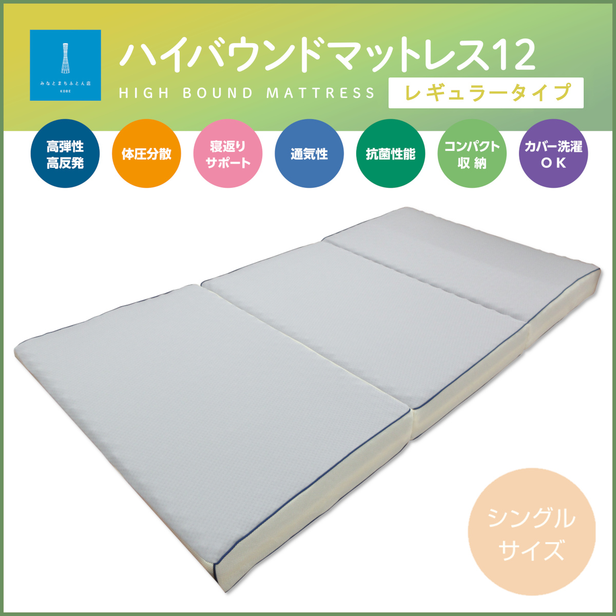 三つ折りタイプなので、使わない時はコンパクトに収納可能。中材パーツを定期的にローテーションすることで、部分的なへたりを遅らせ、長期間快適な寝心地を維持できます。